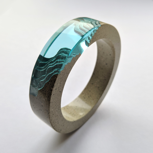 The Estuary is a statement bangle which has been carefully handcrafted from bonded beach sand, blue resin and metal pigments with a high-gloss polished finish.