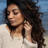 The Serenity Collection draws inspiration from the serene beauty of the ocean and its shores. Our Haven dangle earrings have been carefully crafted by Balinese silversmiths from environmentally friendly recycled 925 sterling silver with 18K gold plating. Each earring features a beautiful light blue Topaz gemstone, evoking the shimmering essence of water.