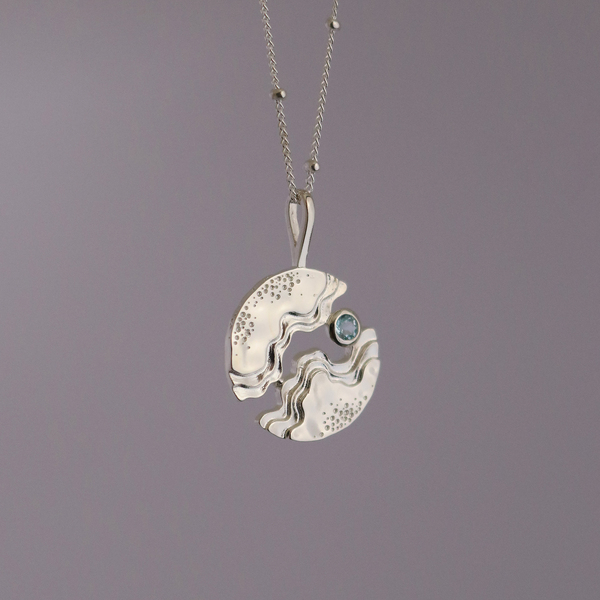 The Serenity Collection draws inspiration from the serene beauty of the ocean and its shores. Our Hideaway necklace has been carefully crafted by Balinese silversmiths from environmentally friendly recycled 925 sterling silver. A beautiful light blue Topaz gemstone aims to resemble the shimmering essence of water.