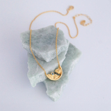 The pendant measures 20mm/ 0.8’’ in height and 13mm/ 0.5’’ width and rests on a 40cm/ 15.7’’ long delicate cable link chain featuring small metal balls and a 5cm/ 2’’ chain extender.
