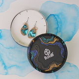 The Rockpool earrings are the largest earrings from our Aqua collection and ideal for those who love to make a statement. They feature a unique asymmetrical tear drop shape and have been crafted from bonded sand, blue resin and silver metal pigments covering the delicate topographic layers of the earrings. Each earring features a delicate freshwater pearl with a beautiful slightly peach pink luster. The ear hooks ...